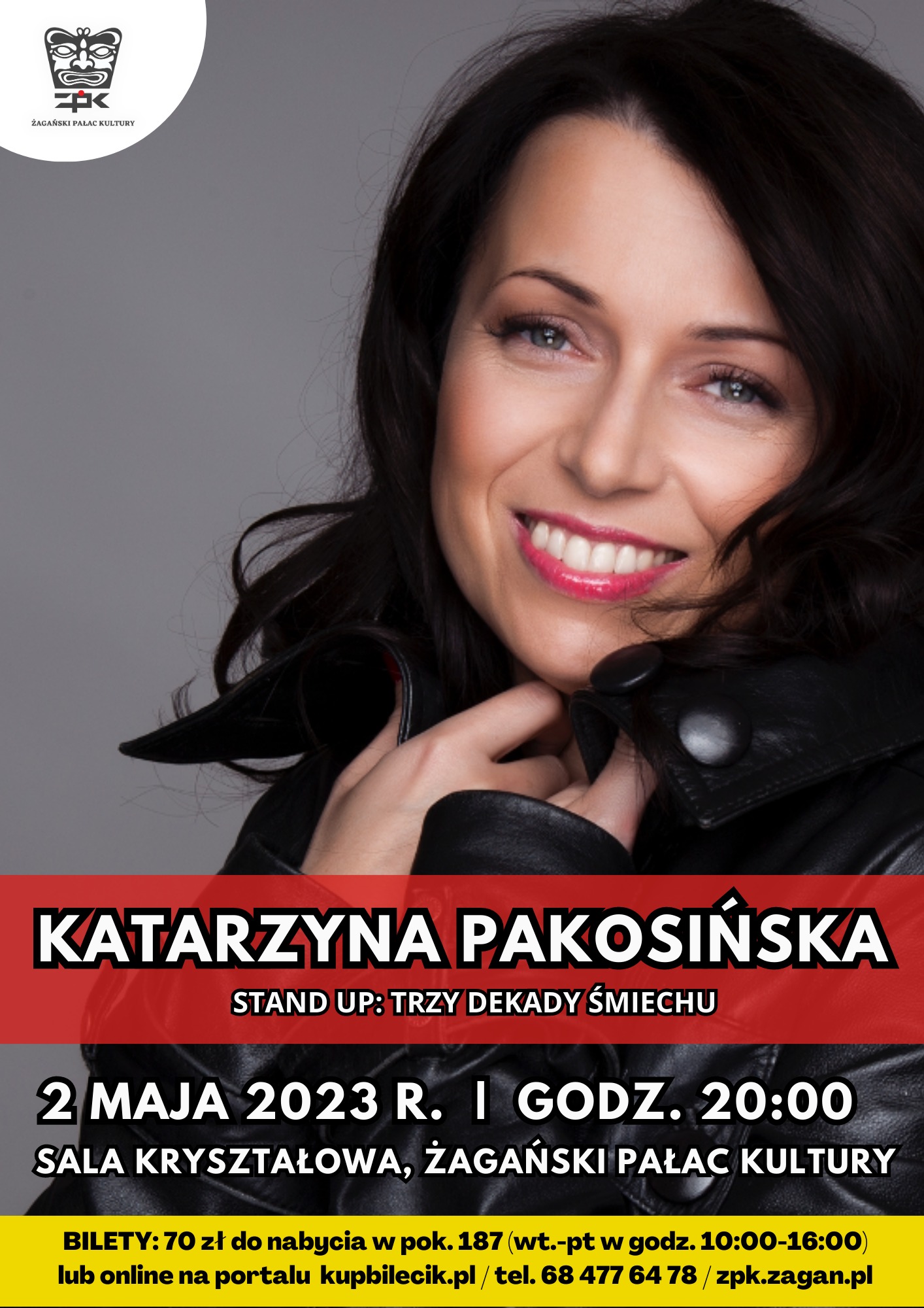 Jak powiedział jeden z krytyków: „Jeżeli śmiech to zdrowie, to ta kobieta jest nieśmiertelna, a my wraz z nią!” Zapraszamy na premierowy program Katarzyny Pakosińskiej – wyjątkowej aktorki i artystki kabaretowej, która świętuje 30-lecie swojej pracy artystycznej i obecności na scenie! Podczas niewiele mającego wspólnego z powagą spotkania, Katarzyna Pakosińska zdradzi Państwu wyjątkowe, prywatne tajemnice i odpowie na nurtujące obie płcie pytania, na które rzecz jasna zna odpowiedzi, albo i nie. Czy wiedzą Państwo jak utrzymać szczęśliwy związek? Czy wielożeństwo byłoby w Polsce udaną inwestycją? Co jest marzeniem współczesnego mężczyzny? Stand-up muzyczny „Trzy Dekady Śmiechu” to program dla widzów o stalowych nerwach i w stabilnych związkach!!! Nie zabraknie tańca i piosenek, tudzież anegdot, które będą mogli Państwo absolutnie gratis i bez autoryzowania wynieść z tego wyjątkowego wieczoru. Kierownictwo muzyczne i aranżacje – Jacek Piskorz. Scenariusz i reżyseria – Marcin Kołaczkowski.
