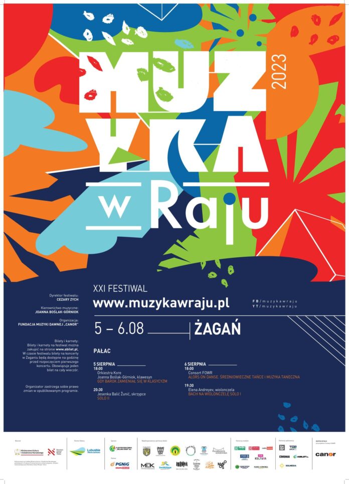 Od soboty w żagańskim pałacu zagości kolejna edycja festiwalu muzyki dawnej „Muzyka w Raju 2023” (bilety dostępne są na stronie abilet). Pierwszy koncert „Gdy barok zamieniał się w klasycyzm” (Orkiestra Kore, Joanna Boślak-Górniok, klawesyn) rozbrzmi w sali Kryształowej Pałacu o godz. 18.00, natomiast drugi „Solo II” (Jesenka Balić Zunić, skrzypce) o godz. 20.30.