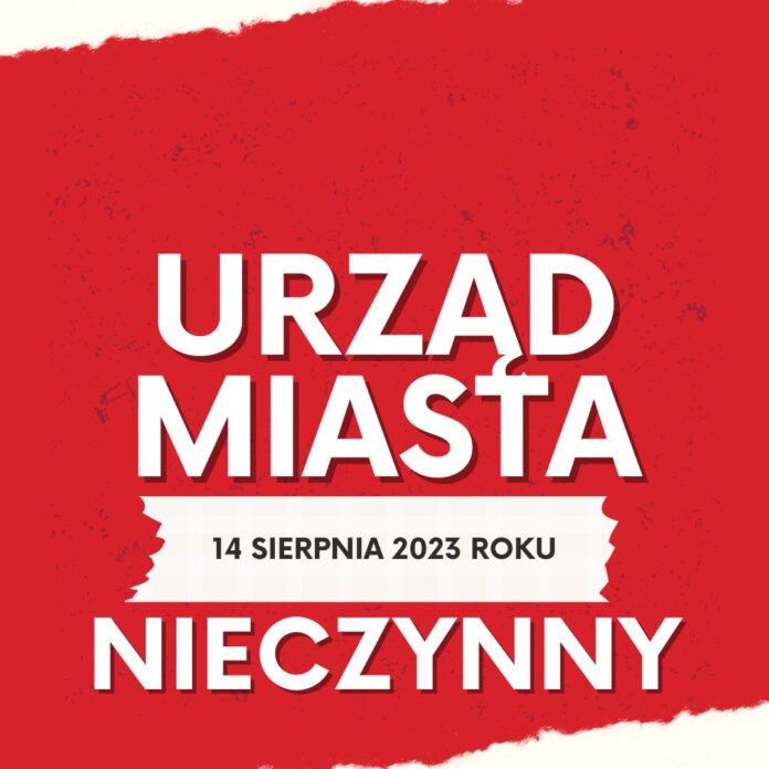 Informujemy, że w poniedziałek 14 sierpnia 2023 roku Urząd Miasta Żagań będzie nieczynny. Za utrudnienia przepraszamy. Ponownie zapraszamy w środę 16 sierpnia od godziny 7.00.