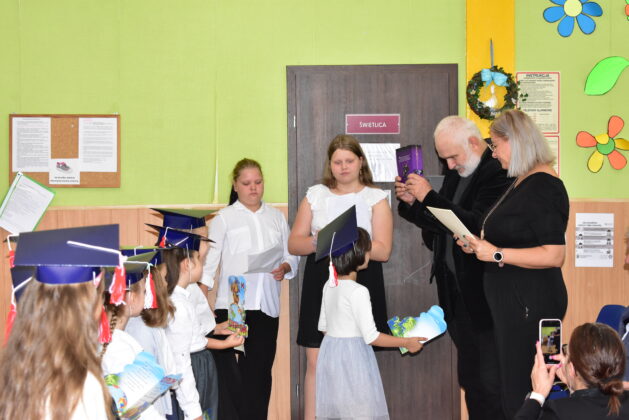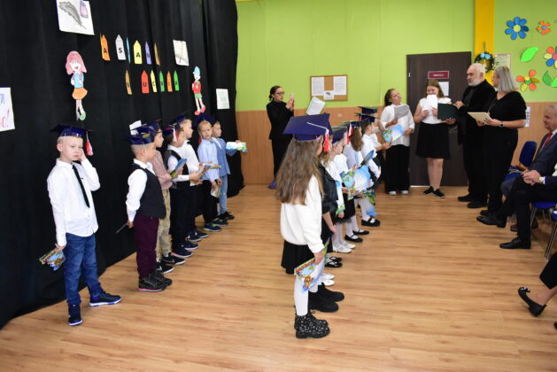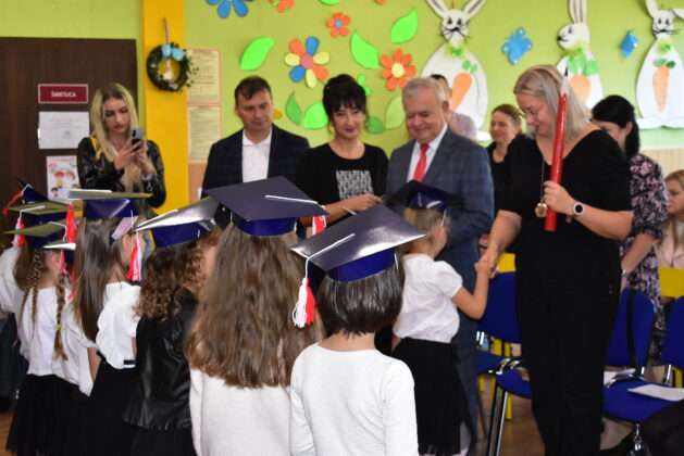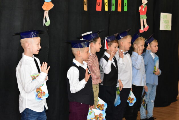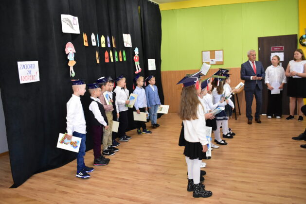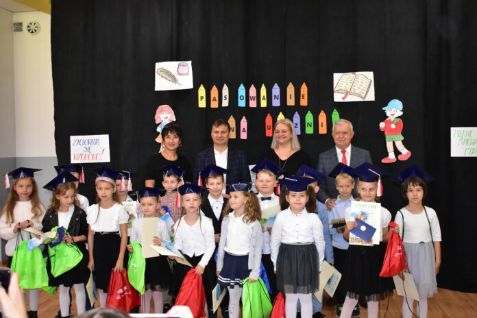 Społeczność Czwórki powitała dziś nowych uczniów. Pierwszaki odpowiedziały na kilka pytań, zaprezentowały swoją wiedzę i umiejętności, pozytywnie zaliczając ten “egzamin wstępny”. Dzieci złożyły dziś ślubowanie i stały się pełnoprawnymi uczniami placówki, obiecując dbanie o dobre imię klasy, szkoły i kraju. Pasowania dokonała dyrektor szkoły Agata Synowiec. Burmistrz Andrzej Katarzyniec wręczył każdemu dyplom, gratulując przyjęcia do grona pierwszoklasistów. Równocześnie dzieci zostały przyjęte w poczet czytelników szkolnej biblioteki.