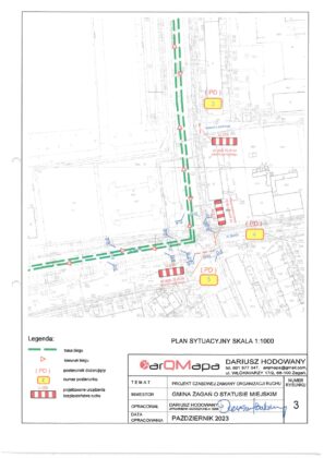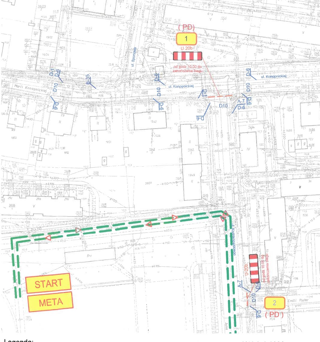 Zakres zmian obejmuje odcinkowe zamknięcie dla ruchu pojazdów i pieszych całych ulic lub tylko odcinków ulic według schematu widocznego na planie sytuacyjnym w zależności od potrzeby. Otwieranie i dopuszczanie ruchu na wcześniej zamkniętych odcinkach w zależności od etapu biegu.