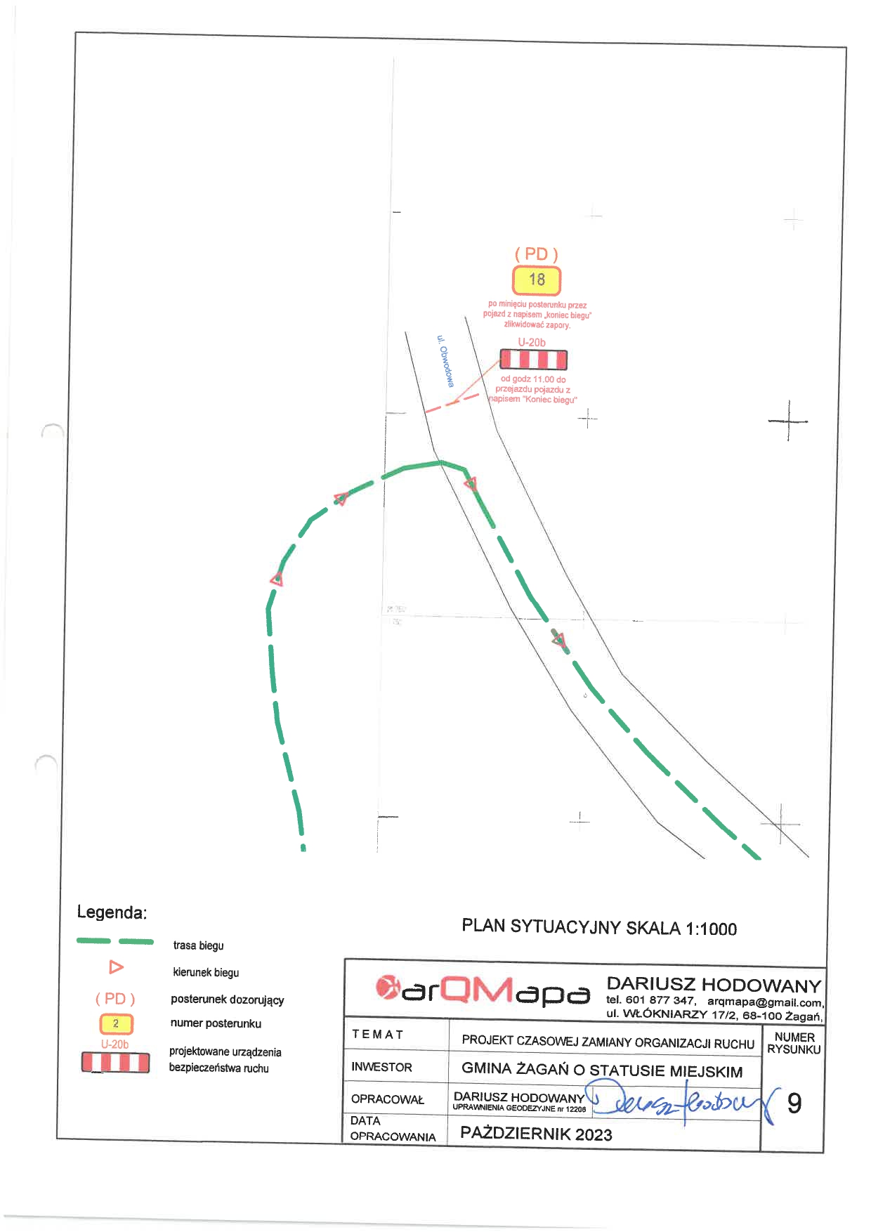 11 listopada 2023 roku w godz. od 10.00 do 13.00 zostanie wprowadzona czasowa zmiana organizacji ruchu w ciągu dróg gminnych – na ulicach M. Konopnickiej, E. Plater, Gen. Bema, Miodowa, Węglowa Cicha, Wesoła oraz w ciągu dróg powiatowych – na ulicy Kochanowskiego (4507F) i Obwodowej (4514F). Czasowa zmiana w istniejącej organizacji ruchu ma na celu zabezpieczenie trasy biegu – zapewnienie sprawnego i bezpiecznego ruchu uczestników IX Biegu Niepodległości ulicami Żagania.