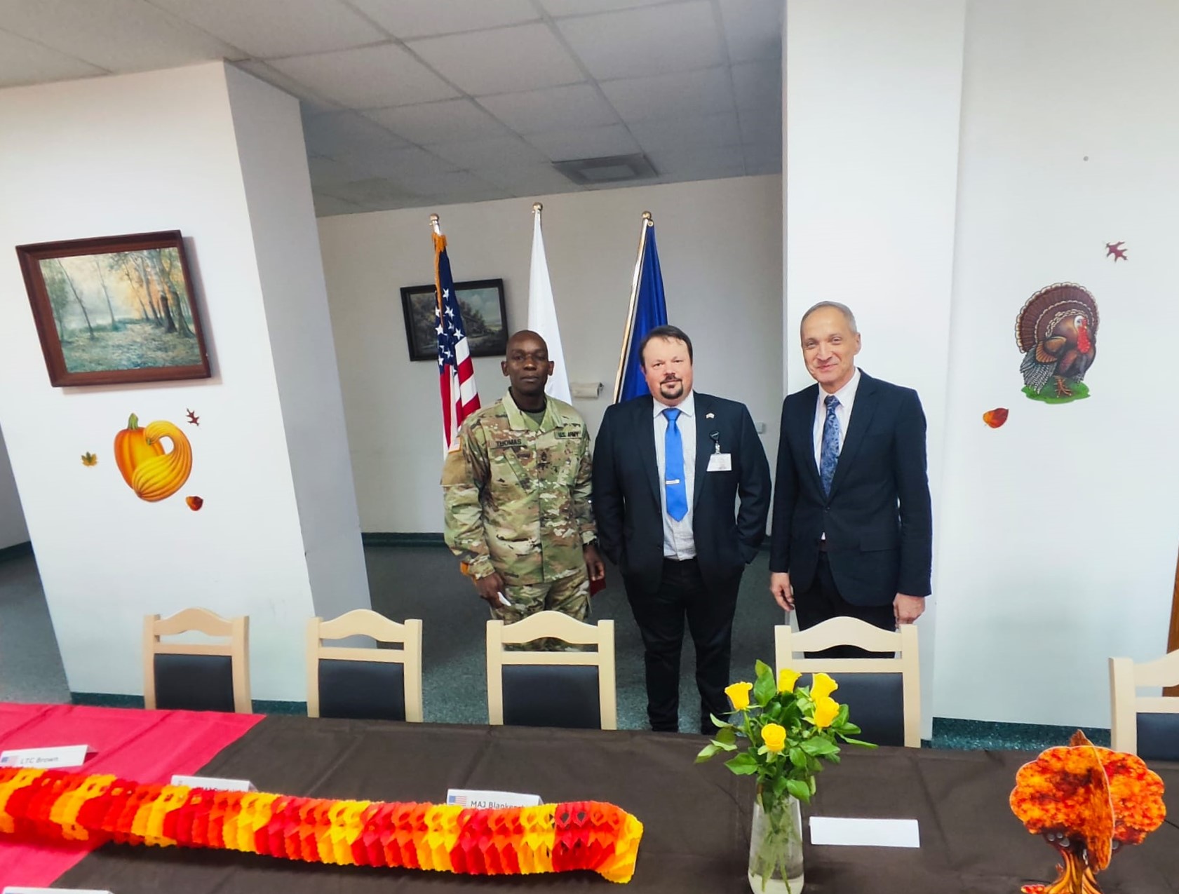 Czwarty czwartek listopada przywitał nas Świętem Dziękczynienia – amerykańskim dniem radości, który od wielu lat obchodzimy w Żaganiu wspólnie z naszymi sojusznikami z armii amerykańskiej. W uroczystym posiłku wziął udział Sebastian Kulesza, którego zaprosił dowódca brygady obecnie przebywającej na terenie Żagania pułkownik Ethan Diven.
