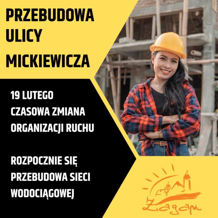 19 lutego 2024 roku wprowadzona zostanie czasowa zmiana organizacji ruchu na ulicy Mickiewicza w związku z inwestycją przebudowy sieci wodociągoweJ. ŻWiK informuje, że w związku z pracami występować mogą chwilowe przerwy w dostawie wody. Po zakończeniu prac miasto przystąpi do ogłoszenia postępowania na remont nawierzchni drogi ulicy Mickiewicza. W tegorocznym budżecie zabezpieczyliśmy na ten cel 1 350 000 złotych.