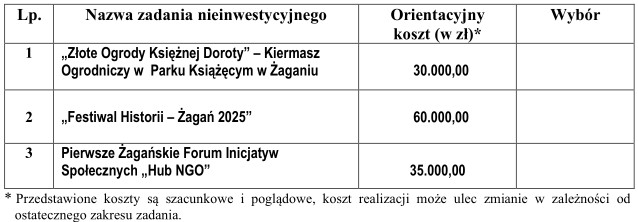 Ogłaszamy ostateczną listę zadań, spośród których mieszkańcy wybiorą te, które zrealizujemy w Żaganiu w przyszłym roku.