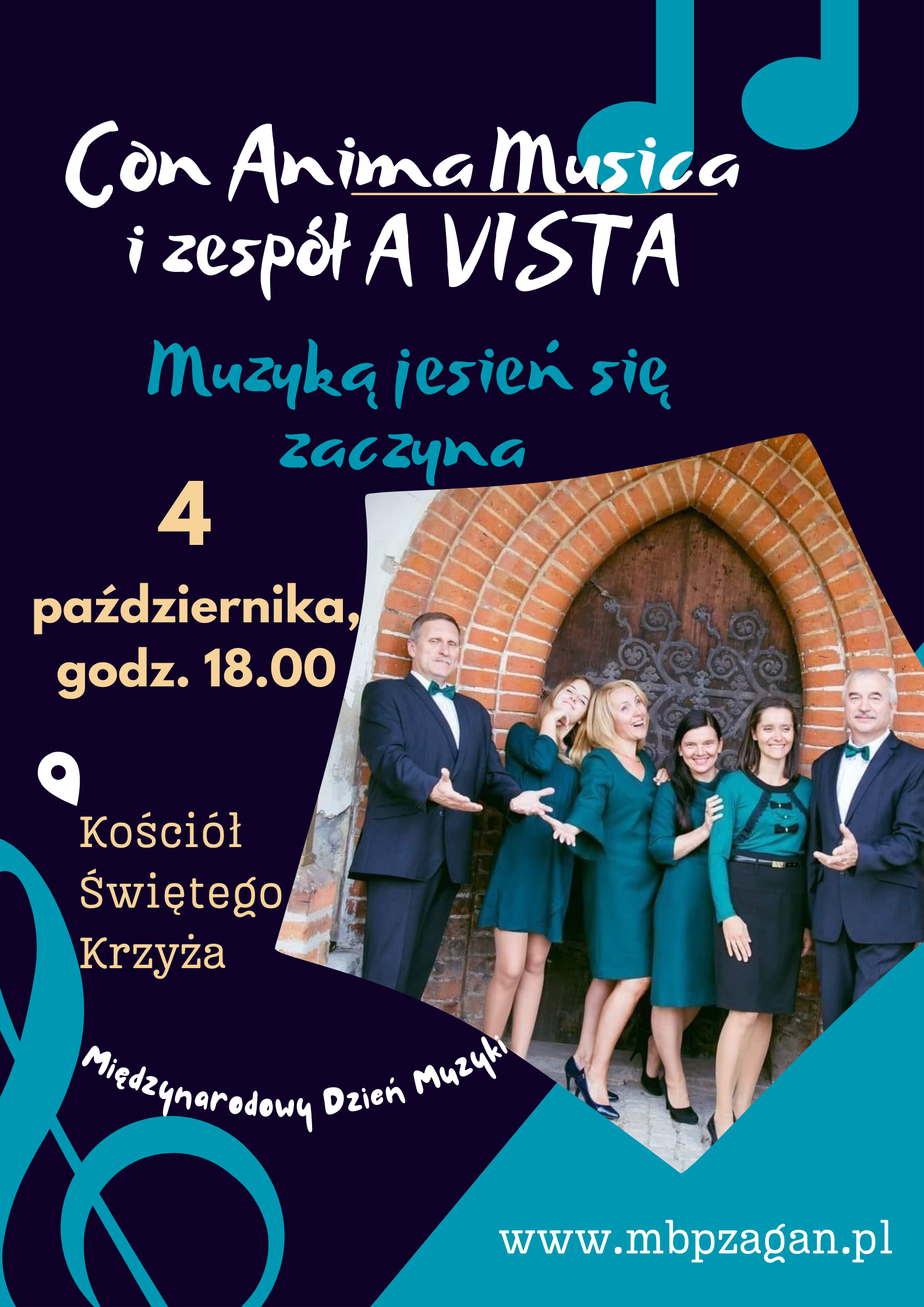 Już dziś o godz. 18.00 w Kościele pw. Świętego Krzyża w Żaganiu odbędzie się koncert zespołu CON ANIMA MUSICA, któremu towarzyszyć będą młodzi muzycy z zespołu A VISTA. Wstęp na wydarzenie jest wolny. Serdecznie zapraszamy.