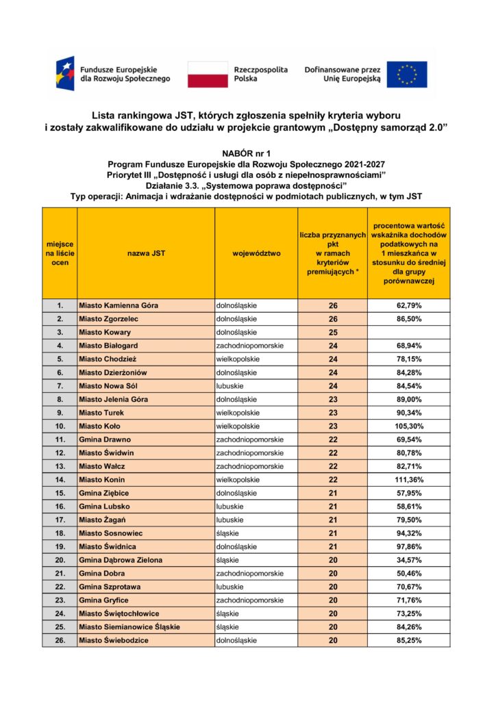 Żagań znalazł się na 17 miejscu! (spośród 390 złożonych wniosków)