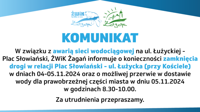 Strona główna KOMUNIKATY Utrudnienia w dniu 5 listopada w związku z awarią wodociągową KOMUNIKATYURZĄD MIASTAWIADOMOŚCI Utrudnienia w dniu 5 listopada w związku z awarią wodociągową 2024.11.04 Zobacz równieżWIĘCEJ OD AUTORA Żagańska Karta Mieszkańca Oświadczenie Burmistrza Miasta Żagań w sprawie oświaty Ruszył nabór wniosków do miejskiego programu wymiany kotłów na paliwa stałe