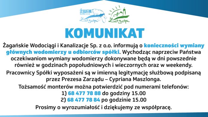 Strona główna URZĄD MIASTA Wymiana głównych wodomierzy przez Żagańskie Wodociągi i Kanalizacje Sp. z o.o. URZĄD MIASTAWIADOMOŚCI Wymiana głównych wodomierzy przez Żagańskie Wodociągi i Kanalizacje Sp. z o.o. 2024.11.22 Zobacz równieżWIĘCEJ OD AUTORA Żagańska Karta Mieszkańca Oświadczenie Burmistrza Miasta Żagań w sprawie oświaty Ruszył nabór wniosków do miejskiego programu wymiany kotłów na paliwa stałe
