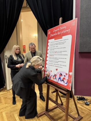 Symbolicznym elementem wydarzenia było podpisanie przez zgromadzonych gości wypracowanego wspólnie w oparciu o dialog Żagańskiego Dekalogu „Dzieciństwa bez Przemocy”, który został rozdany do wszystkich żagańskich placówek oświatowych oraz podświetlenie budynku urzędu miasta na czerwony kolor.