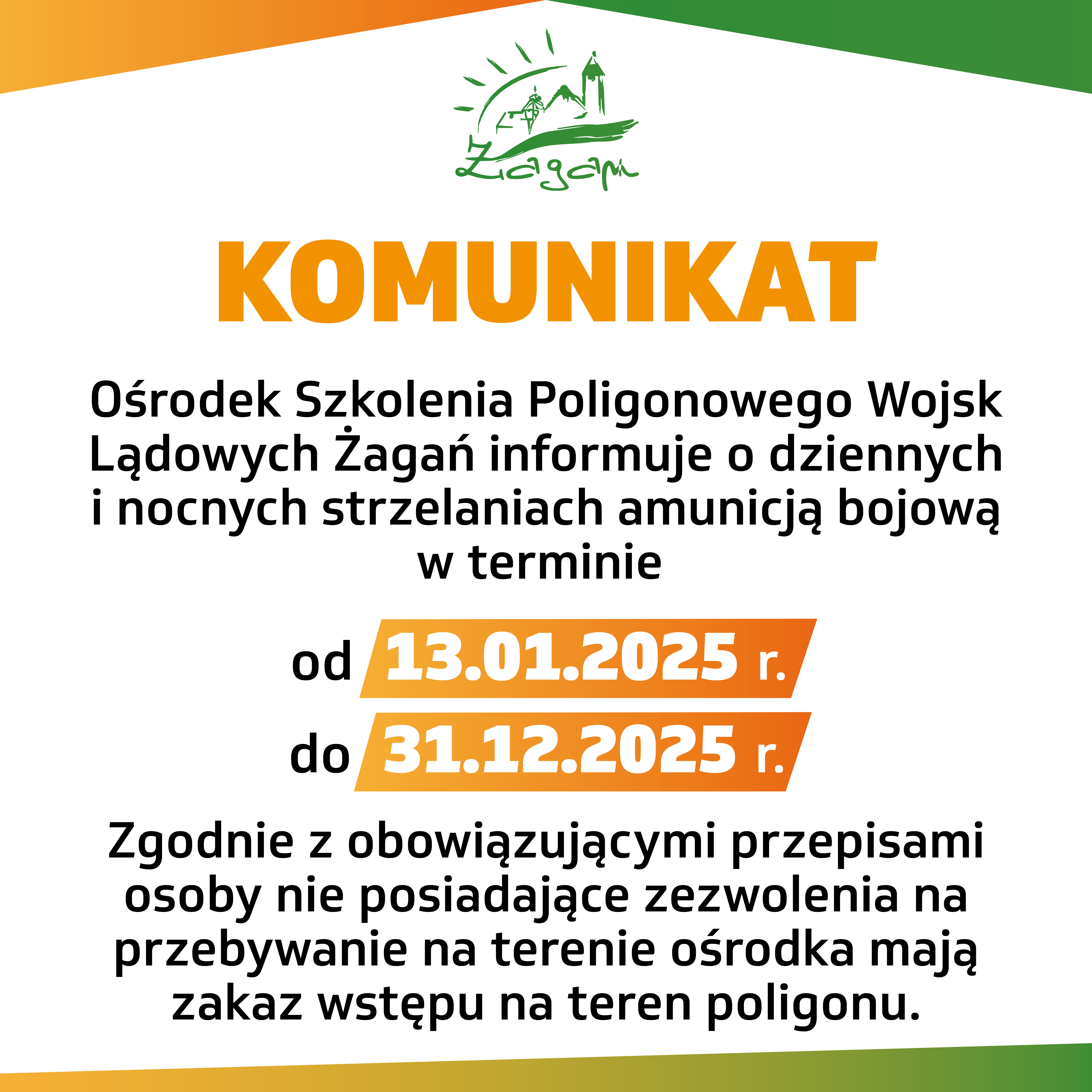 Strona główna KOMUNIKATY KOMUNIKAT OŚRODKA SZKOLENIA POLIGONOWEGO WOJSK LĄDOWYCH ŻAGAŃ KOMUNIKATYURZĄD MIASTA KOMUNIKAT OŚRODKA SZKOLENIA POLIGONOWEGO WOJSK LĄDOWYCH ŻAGAŃ 2025.01.10 KOMUNIKAT OŚRODKA SZKOLENIA POLIGONOWEGO WOJSK LĄDOWYCH ŻAGAŃ Zobacz równieżWIĘCEJ OD AUTORA Oświadczenie Burmistrza Miasta Żagań w sprawie oświaty Ruszył nabór wniosków do miejskiego programu wymiany kotłów na paliwa stałe Rusza przebudowa kąpieliska miejskiego