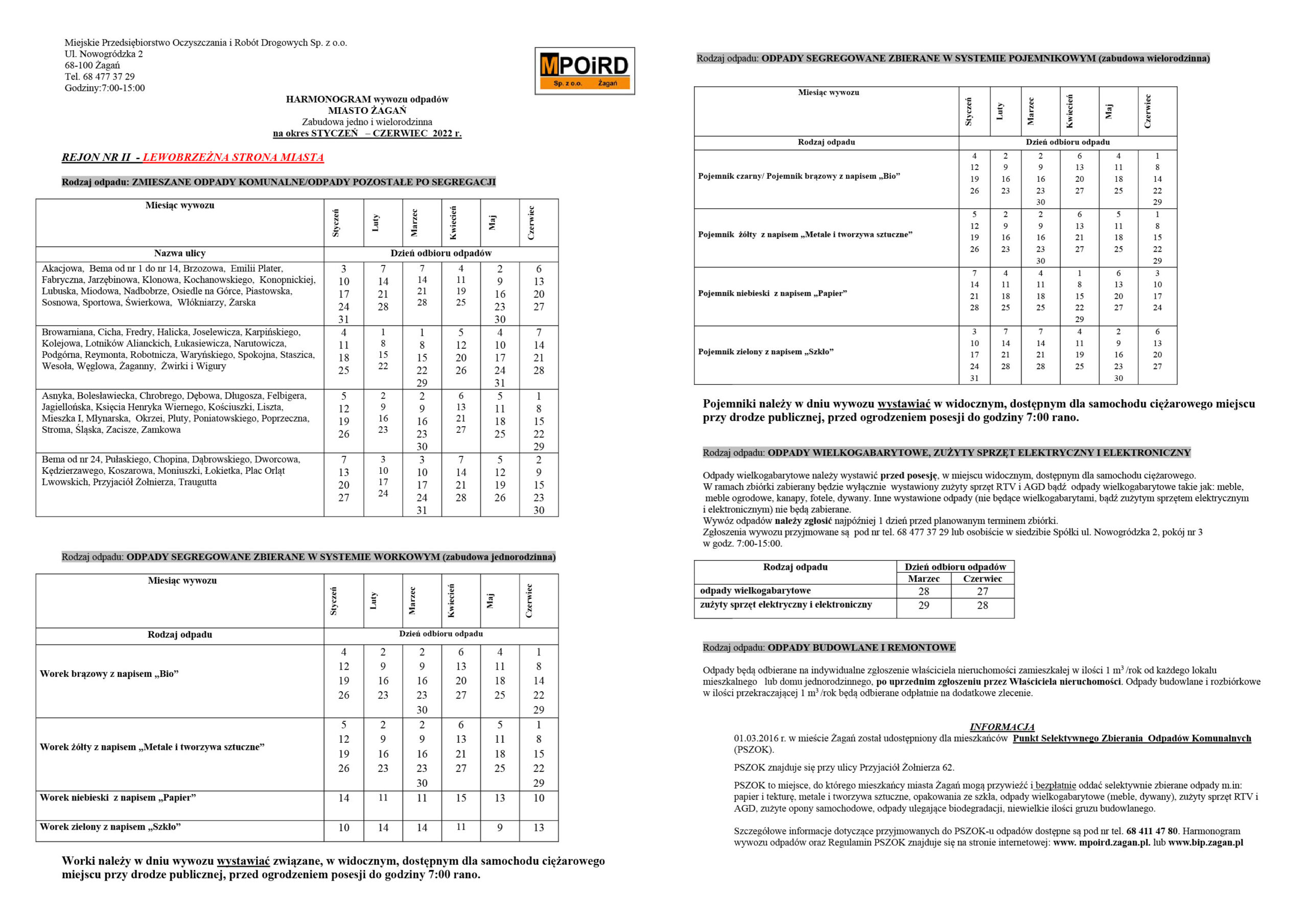 HARMONOGRAM ODBIORU ODPADÓW