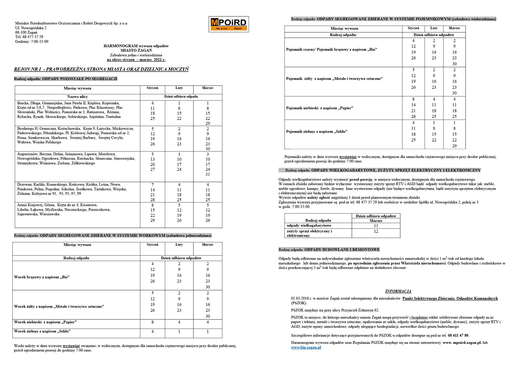 HARMONOGRAM ODBIORU ODPADÓW