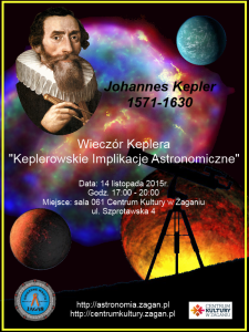 14 listopada 2015 roku w godzinach od 17:00 do 20:00 zapraszamy do sali 061 żagańskiego Pałacu Książęcego na Wieczór z Keplerem. Spotkanie rozpocznie prelekcja “Keplerowskie Implikacje Astronomiczne” przygotowana przez Jacka Patka, następnie zapraszamy do obejrzenia prezentacji działań Sekcji Astronomicznej Szkoły Talentów Centrum Kultury w Żaganiu oraz dyskusji. Wieczór zakończy obserwacja Wielkiej Mgławicy Andromeda - obserwatorów zapraszamy […]