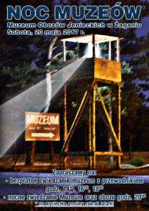 W sobotę 20 maja 2017 roku zapraszamy na Noc Muzeów w Muzeum Obozów Jenieckich w Żaganiu. W ramach tegorocznej akcji można bezpłatnie obejrzeć wystawy muzealne z przewodnikiem. Chętnych do poznania niezwykłej historii zapraszamy o godz. 14:00, 16:00, 18:00. O godzinie 20:00 rozpocznie się natomiast nocne zwiedzanie muzeum oraz terenów poobozowych. Na tę wycieczkę zabieramy latarki […]