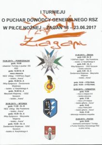 Od 19 do 23 czerwca 2017 roku odbywa się w Żaganiu I Turniej o Puchar Dowódcy Generalnego RSZ w piłce nożnej Wojska Polskiego.Szczegółowy harmonogram rozgrywek dostępny jest na plakacie.Zapraszamy!