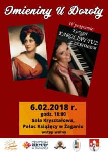 We wtorek 6 lutego, o godz. 18.00 Towarzystwo Przyjaciół Żagania, Centrum Kultury i spółka Pałac Książęcy zapraszają na salę Kryształową na imieniny u księżnej Doroty. Wraz z nią imieniny będą obchodzić wszystkie, obecne Doroty. W programie m.in; informacje o księżnej oraz koncert pt. „Pola Lawendowe” Karoliny Tuz z zespołem w składzie: Mateusz Pęciak - akordeon, […]