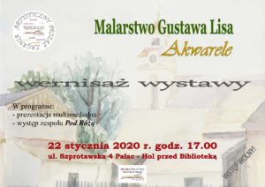 Miejska Biblioteka Publiczna im. Papuszy w Żaganiu zaprasza na wernisaż wystawy malarstwa Gustawa Lisa, połączony z występem zespołu "Pod różą". Do holu przed biblioteką zapraszamy 22 stycznia 2020 roku o godzinie 17.00.