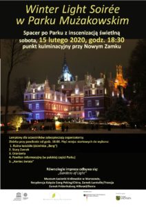 W imieniu organizatora zapraszamy na coroczny Festiwal Zimowych Świateł, który odbędzie się w sobotę, 15 lutego 2020 r. w Parku Mużakowskim. O godz. 18.30 uczestnicy wyruszą z punktów startowych po polskiej i niemieckiej stronie parku w pochód z lampionami i spotkają się na łące przez Zamkiem przy muzyce na żywo, pokazie ognia i kulinarnych przekąskach. […]