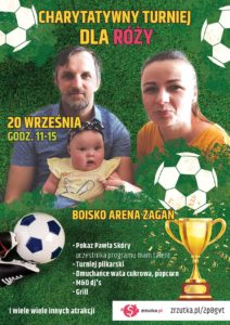 20 września w godzinach 11.00-15.00 zapraszamy na żagańską Arenę, gdzie odbędzie się charytatywny turniej dla Róży Merza. Wśród atrakcji m.in. pokaz Pawła Skóry - uczestnika programu "Mam talent", turniej piłkarski, dmuchańce, wata cukrowa, popcorn, M&D dj's oraz grill.