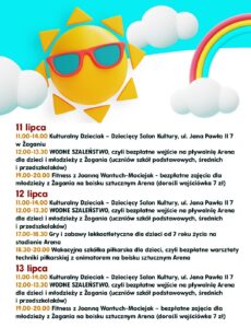 Zapraszamy do zapoznania się ze środowymi atrakcjami wakacyjnymi: - 11.00-14.00 Kulturalny Dzieciak – Dziecięcy Salon Kultury: "Idziemy do galerii "Dobrego Diabła". Dzień aktora - odwiedzamy teatr, oglądamy stroje i rozmawiamy o pracy aktora" (grupa wiekowa 7-15 lat, więcej informacji pod nr. tel. 602721395), ul. Jana Pawła II 7 w Żaganiu - 12.00-13.30 WODNE SZALEŃSTWO, czyli […]