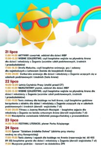 Zapraszamy do zapoznania się z dzisiejszą ofertą wakacyjną - 11.00-14.00 AKTYWNY czwartek, oddział dla dzieci MBP - 12.00-13.30 WODNE SZALEŃSTWO, czyli bezpłatne wejście na pływalnię Arena dla dzieci i młodzieży z Żagania (uczniów szkół podstawowych, średnich i przedszkolaków) - 17.00-18.30 Strefa Malucha, czyli bezpłatne animacje, gry i zabawy dla najmłodszych z Latawcem (boisko do koszykówki […]