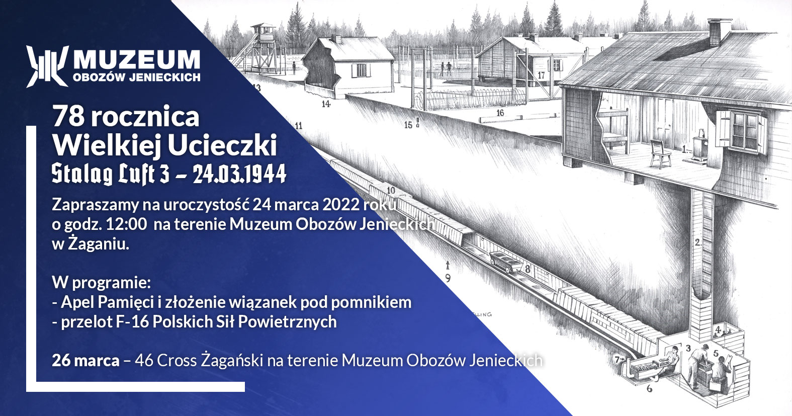 24 marca 2022 roku o godz. 12:00 na terenie Muzeum Obozów Jenieckich rozpocznie się uroczystość z okazji 78. rocznicy Wielkiej Ucieczki jeńców Stalagu Luft 3 w Żaganiu. Jej celem jest upamiętnienie rozstrzelanych przez Gestapo uczestników ucieczki. W grupie zamordowanych uciekinierów było sześciu Polaków, oficerów Polskich Sił Powietrznych na Zachodzie: mjr naw. Antoni Kiewnarski, por. pilot Stanisław Król, por. Włodzimierz Kolanowski, por. Jerzy T. Mondschein, por. Kazimierz Pawluk, por. Paweł Tobolski.