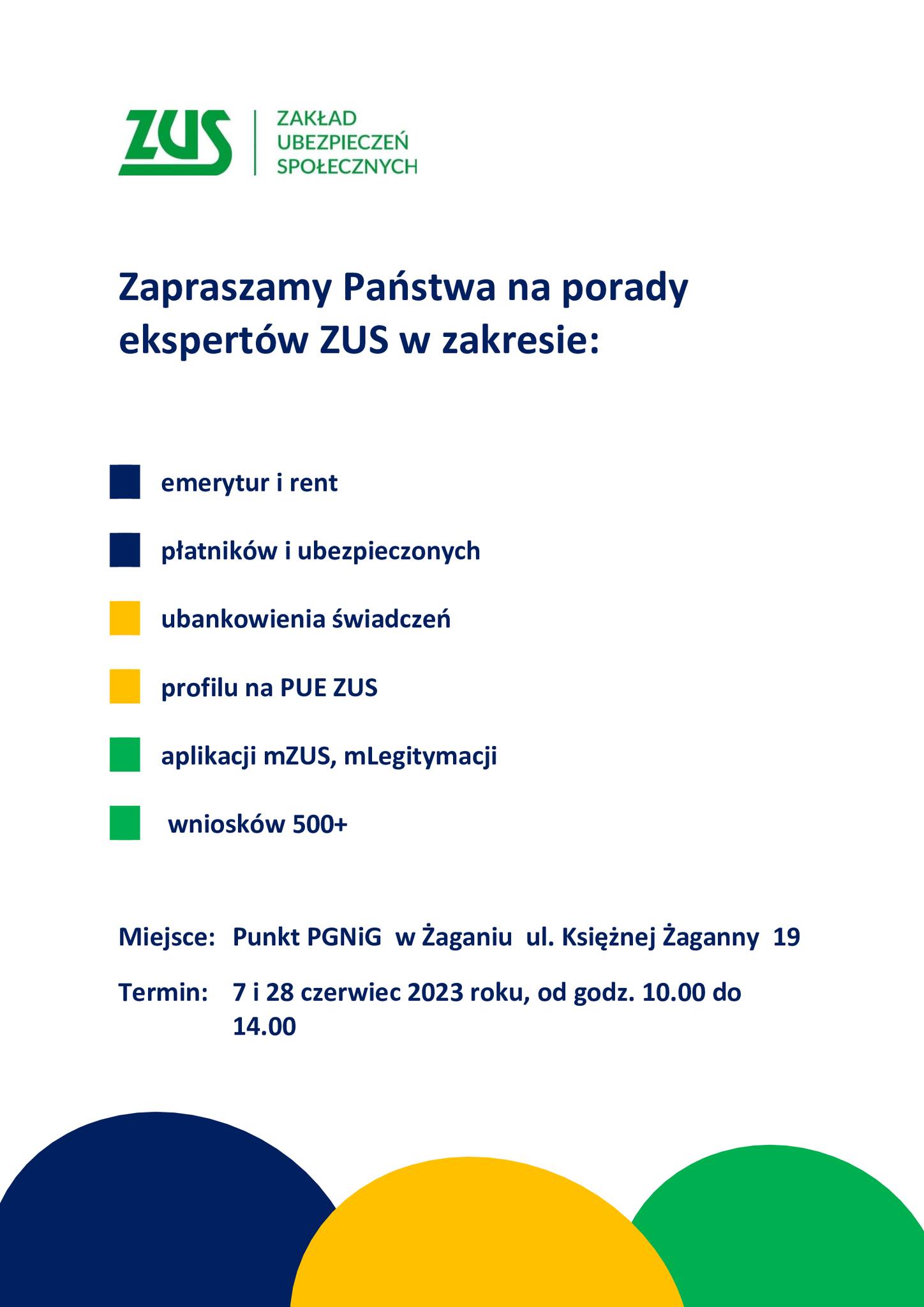 Dyżur ekspertów ZUS w Żaganiu