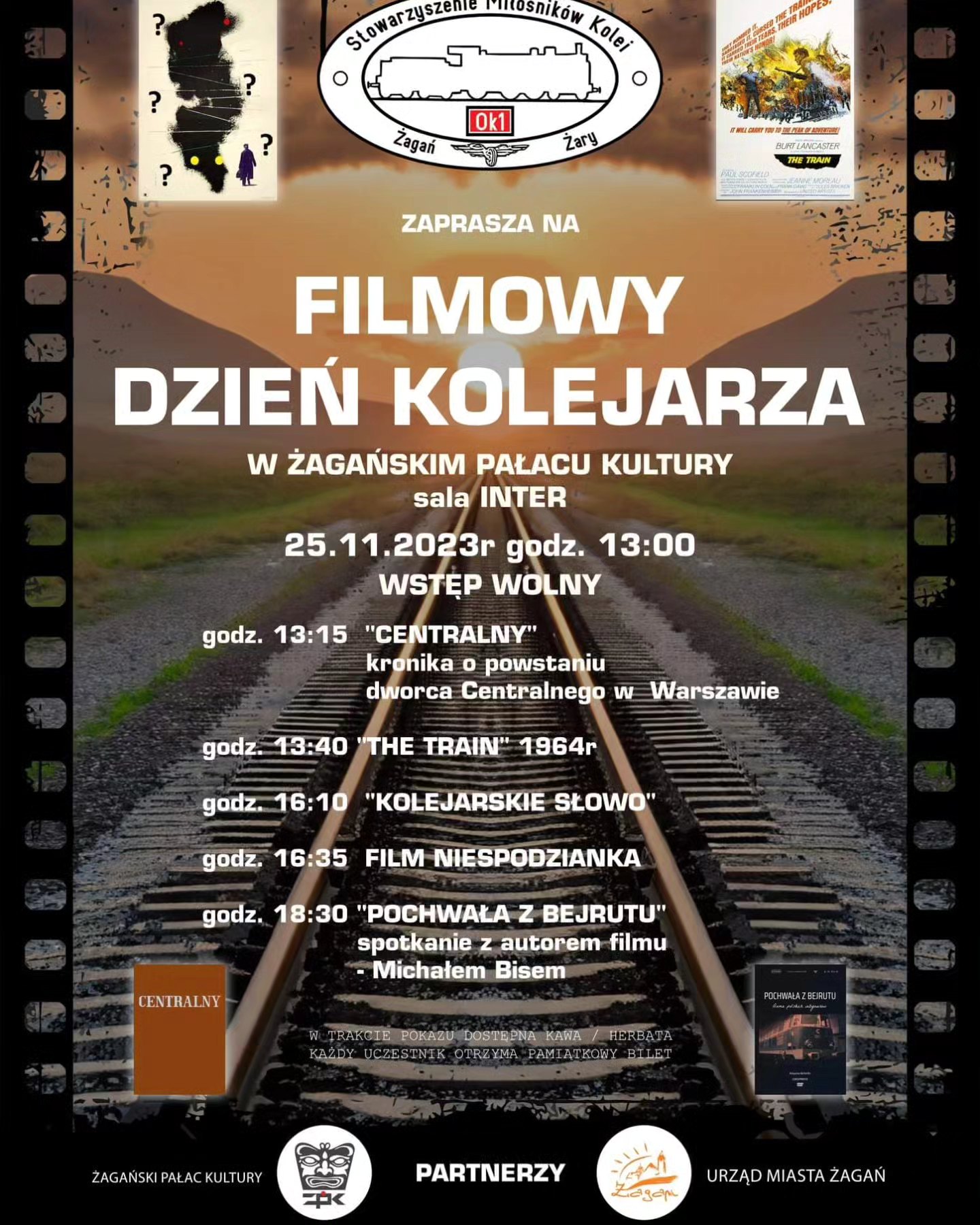 Z okazji Dnia Kolejarza zapraszamy do świętowania tego dnia “na filmowo”. Zapraszamy na seanse wybrane przez Stowarzyszenie Miłośników Kolei Ok-1 z Żagania i wspólnego oglądania produkcji o tematyce kolejowej lub z pociągiem w tle.