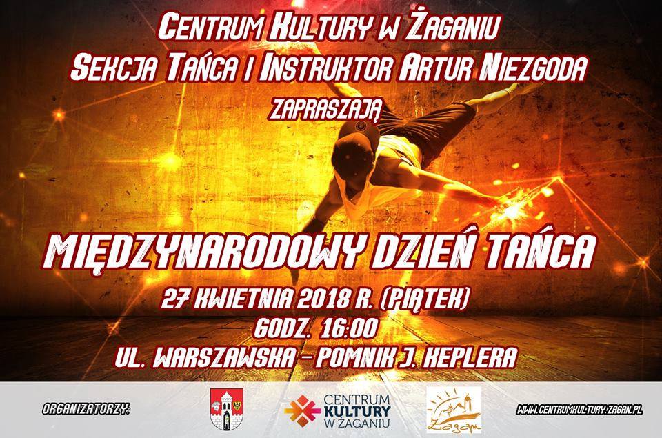 W niedzielę 27 kwietnia o godz. 16.00 pod pomnikiem Keplera przy ul. Warszawskiej w Żaganiu odbędzie się Międzynarodowy Dzień Tańca. Na wydarzenie zapraszają Centrum Kultury, sekcja tańca i instruktor Artur Niezgoda.