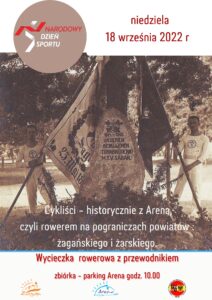 Narodowy Dzień Sportu to wyjątkowy dzień w roku, w którym zwracamy uwagę na tych, którzy kochają sport. Razem pokażmy, jak wielu Polaków żyje aktywnie! Tego dnia w kilkuset najważniejszych placówkach sportowych w Polsce organizowany jest dzień otwarty. Polacy mogą nieodpłatnie korzystać ze specjalnie zorganizowanych treningów z wielu dyscyplin sportowych oraz wziąć udział w pikniku na błoniach PGE Narodowego. Żagańska Arena zaprasza 18 września na dwa bezpłatne szkolenia oraz wycieczkę rowerową. Trwają zapisy na: