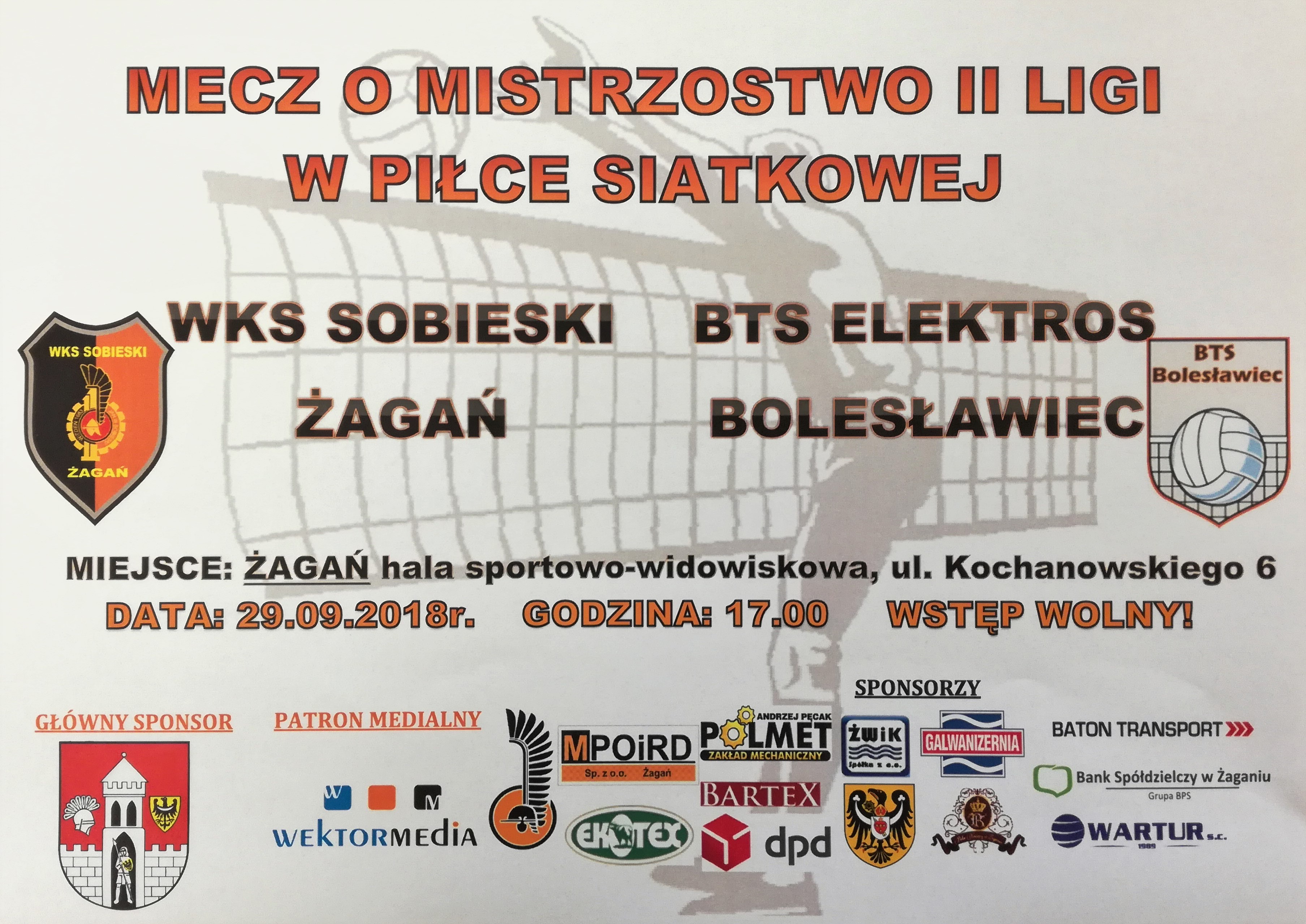 W sobotę 29 września o godz. 17.00 na hali Arena zagra WKS Sobieski Żagań z BTS Elektros Bolesławiec. Wstęp wolny