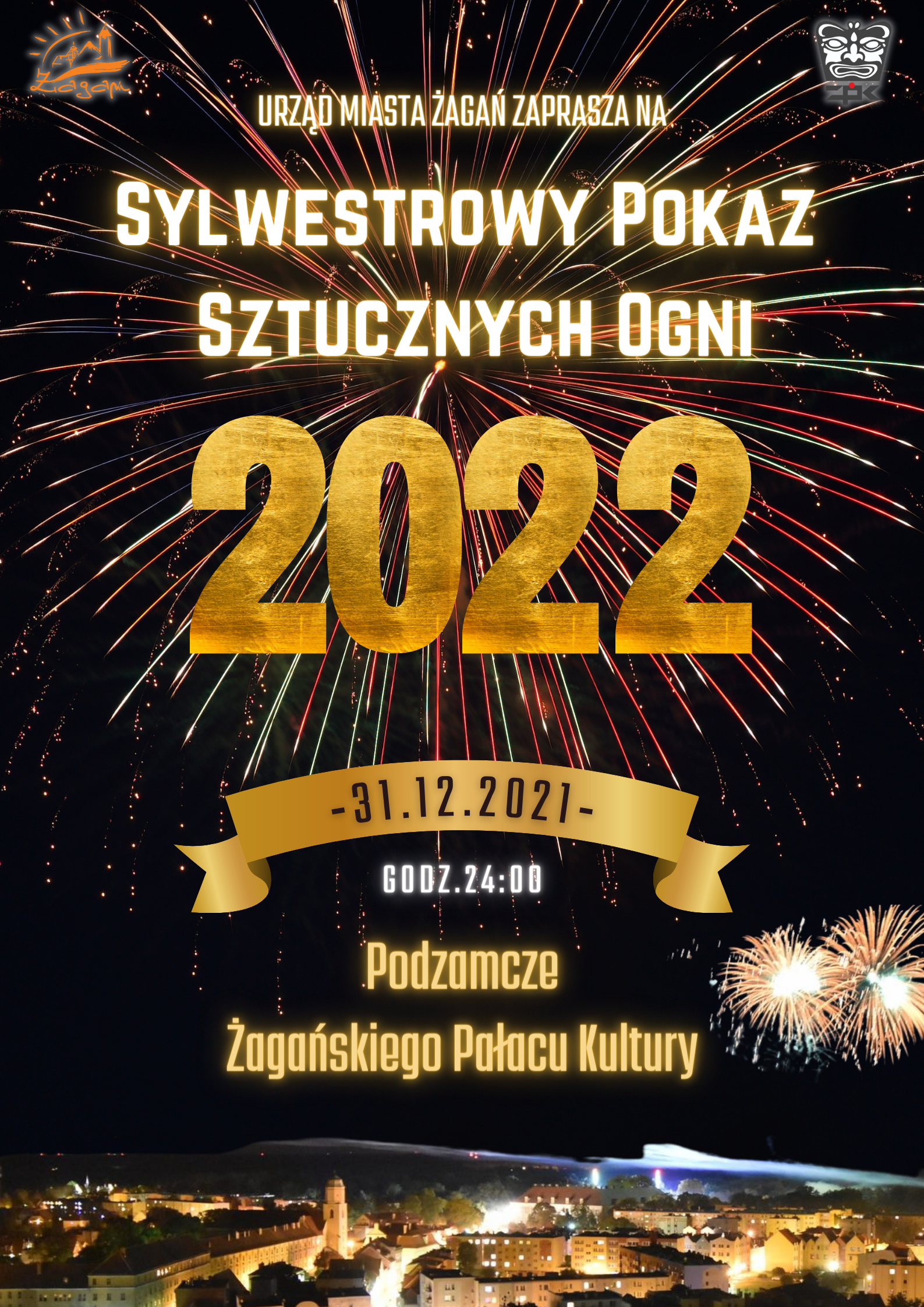Urząd Miasta Żagań zaprasza w noc sylwestrową na podzamcze Żagańskiego Pałacu Kultury na pokaz sztucznych ogni.