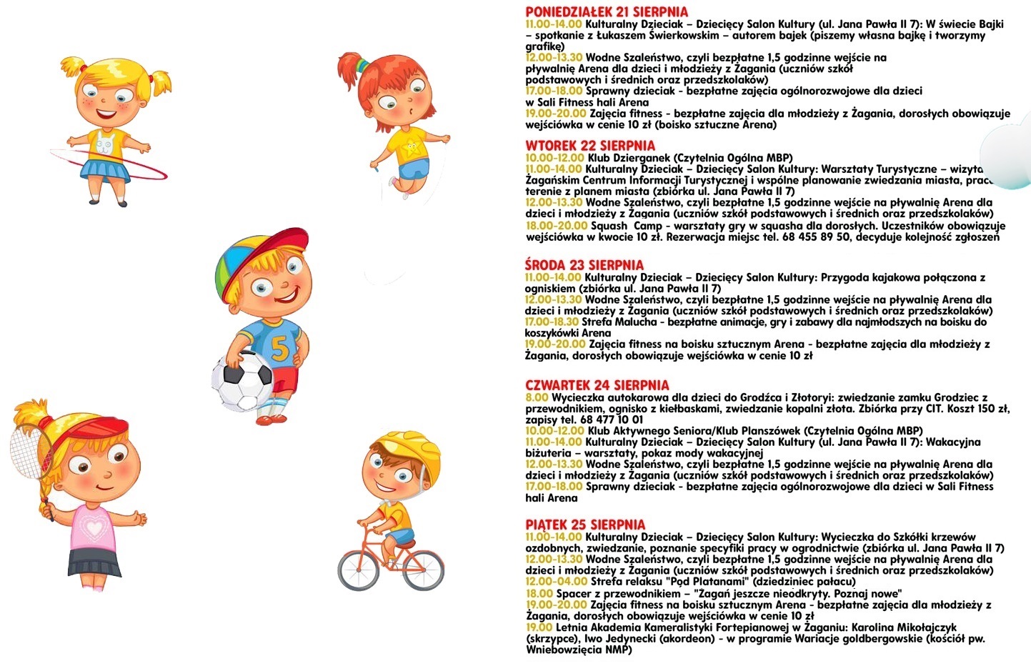 12.00-13.30 Wodne Szaleństwo, czyli bezpłatne 1,5 godzinne wejście na pływalnię Arena dla dzieci i młodzieży z Żagania (uczniów szkół podstawowych i średnich oraz przedszkolaków)