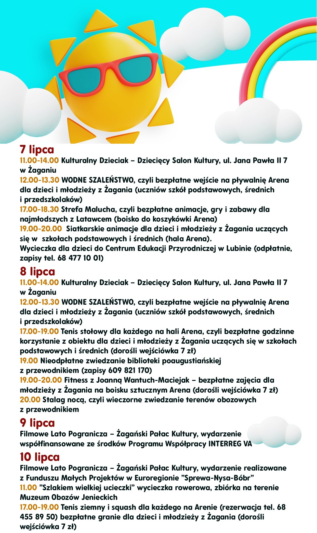 Filmowe Lato Pogranicza – Żagański Pałac Kultury, wydarzenie współfinansowane ze środków Programu Współpracy INTERREG VA. W programie: