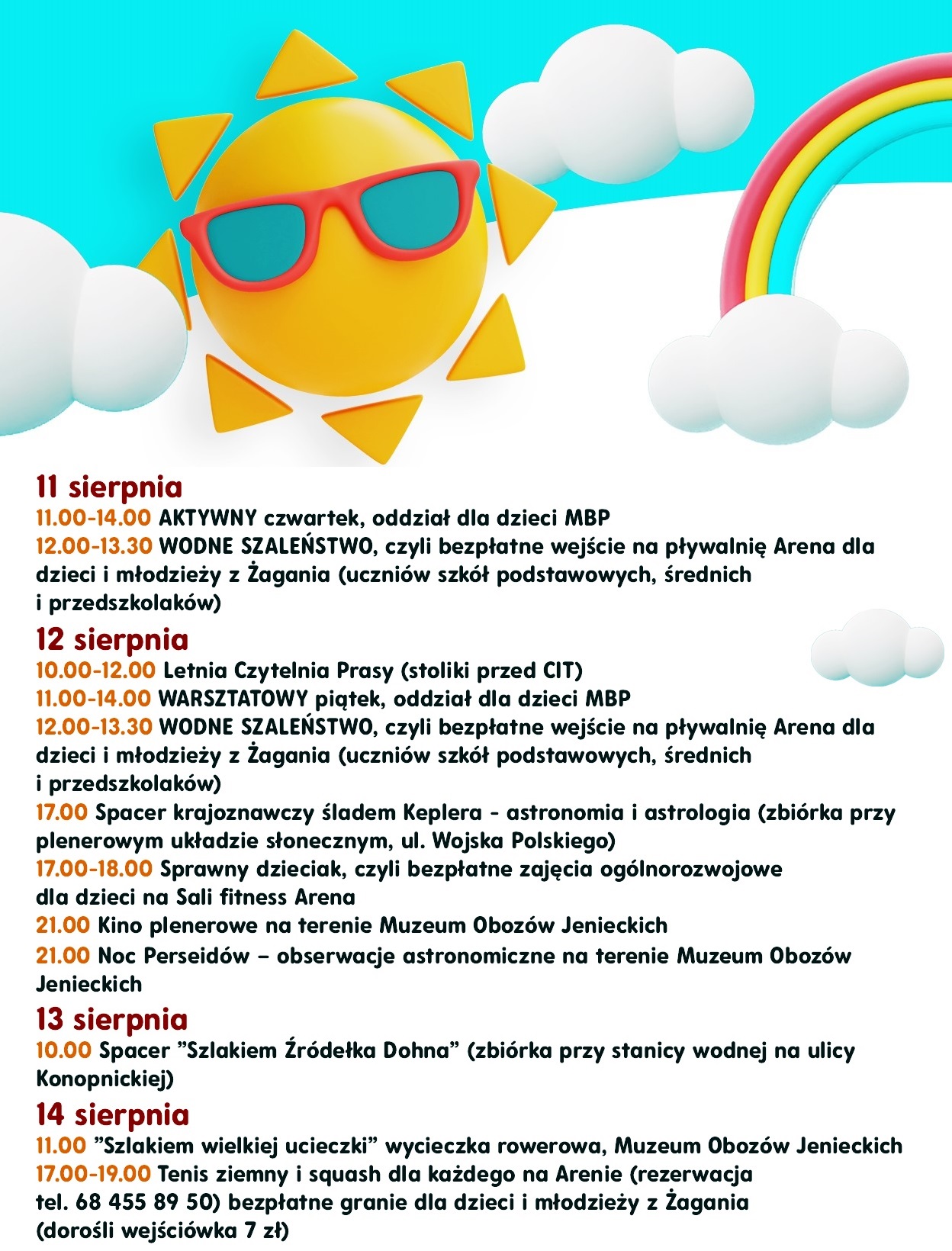 – W trakcie wakacji Orliki przy PSP 2 oraz przy PSP 3 czynne od poniedziałku do niedzieli od 15:00 do 20.00