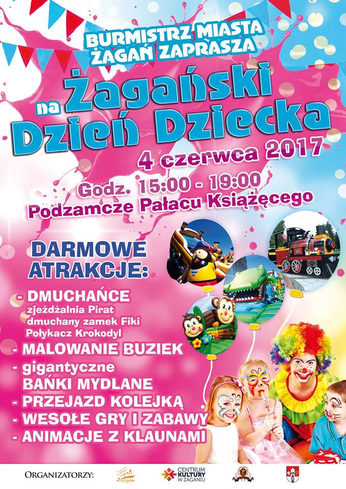 W imieniu Burmistrza Miasta Żagań zapraszamy na Żagański Dzień Dziecka, który odbędzie się 4 czerwca od godz. 15:00 do 19:00 na Podzamczu Pałacu Książęcego. Dla wszystkich dzieci przygotowaliśmy mnóstwo darmowych atrakcji: