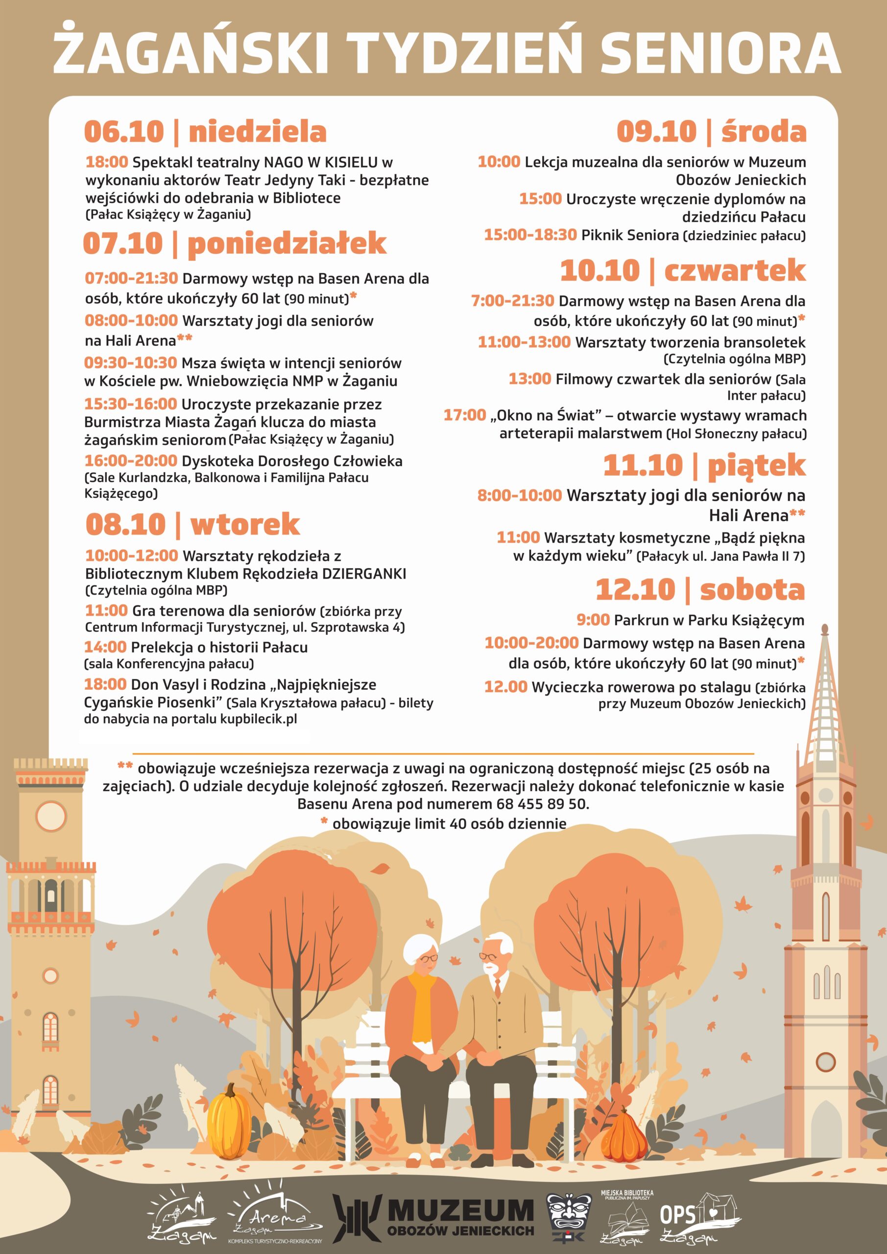 6 października rozpoczynamy Żagański Tydzień Seniora. W programie przewidziano liczne atrakcje, w tym dyskotekę, zajęcia jogi, warsztaty, gry terenowe, seans filmowy, basen czy Piknik Seniora.