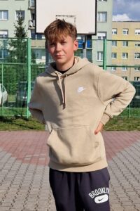 Interesuje się sportem, wycieczkami, układaniem lego. Zdecydował się kandydować, ponieważ chciałby mieć wpływ na to, co dzieje się w naszym mieście. Chciałby, aby został odnowiony i na nowo otwarty basen miejski, by powstały nowe płace zabaw, ogólnodostępne boisko do koszykówki, by wyznaczono tereny do wyprowadzania psów.